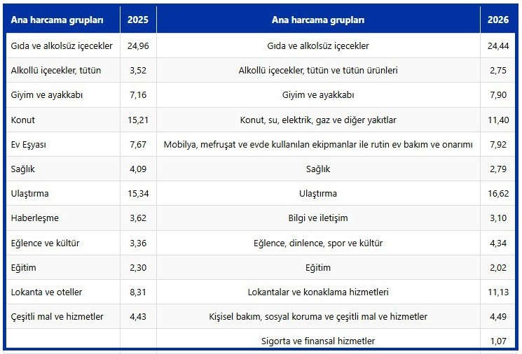 Öğrenebildiklerimiz; sepette bu yıl 428 madde ve 972 madde çeşidi bulunduğu ve aşağıda fikir yürüteceğimiz ağırlıklardır. Hepsi bu kadar…