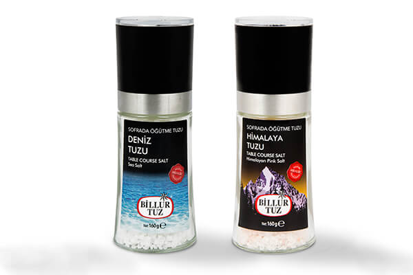 Billur Tuz’un yeni ambalajı, cam şişesi ve seramik öğütme mekanizması sayesinde sofralara hem lezzet hem de şıklık katıyor.